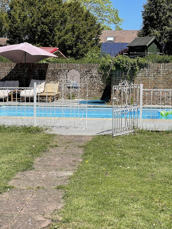 1 acre garden, Koi pond, ornamental ironwork in the garden, swimming pool, annexe, outbuilding.