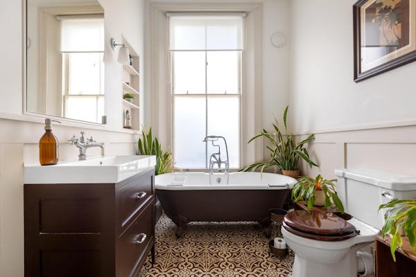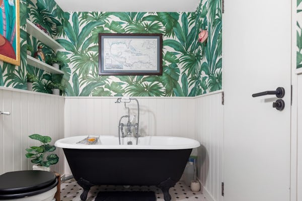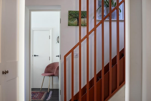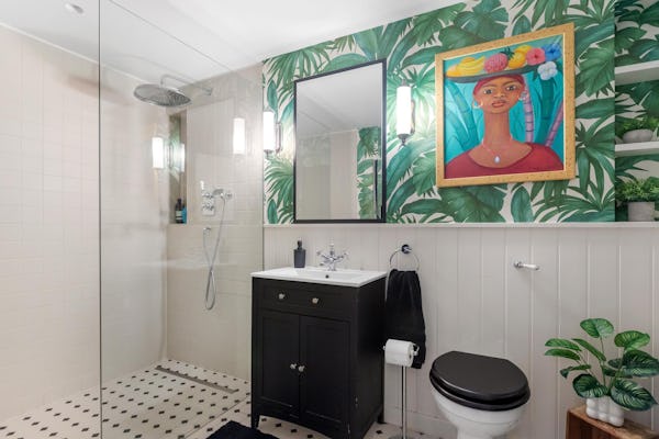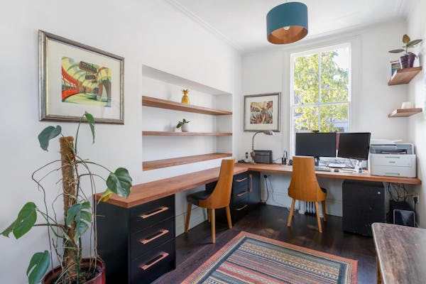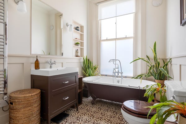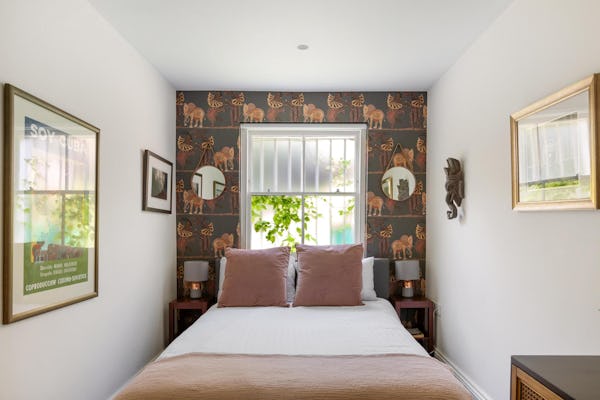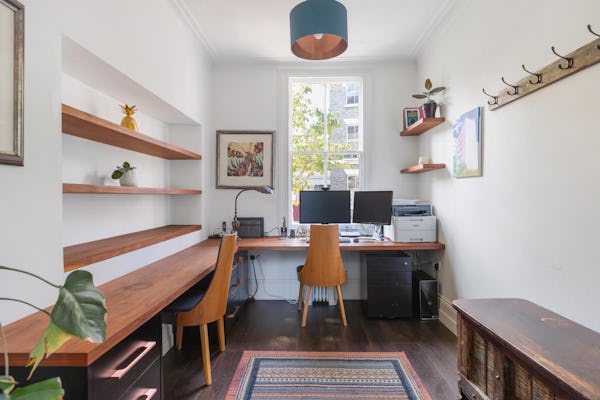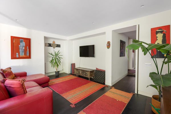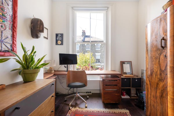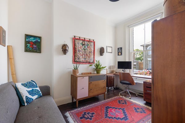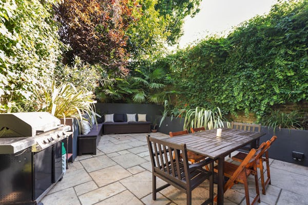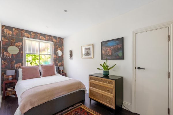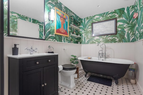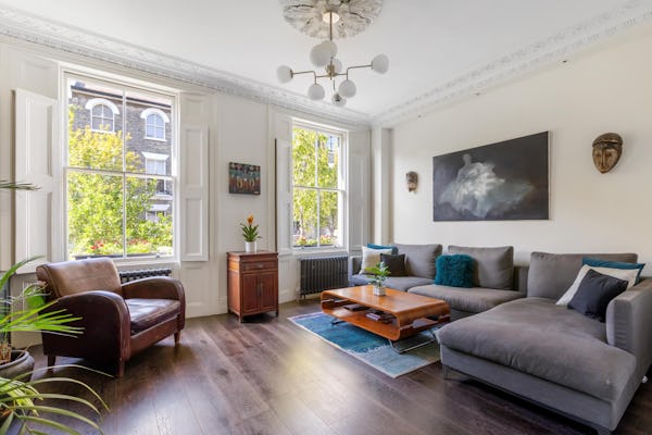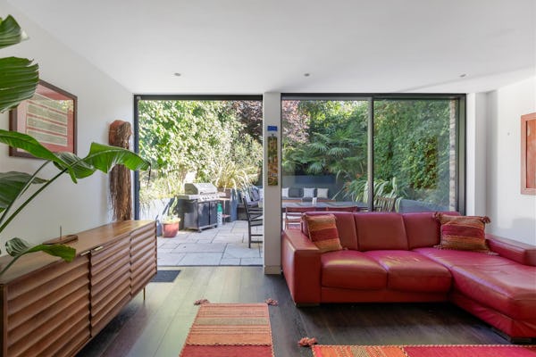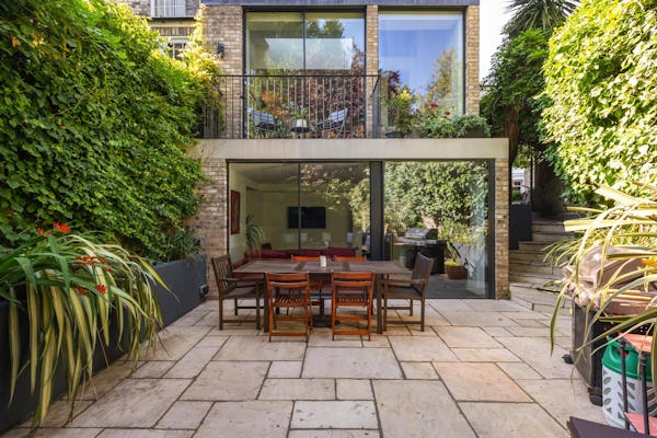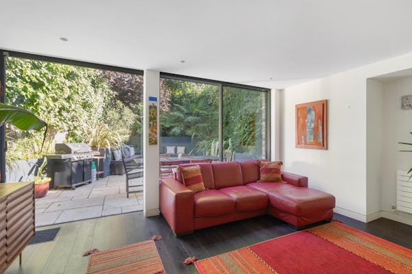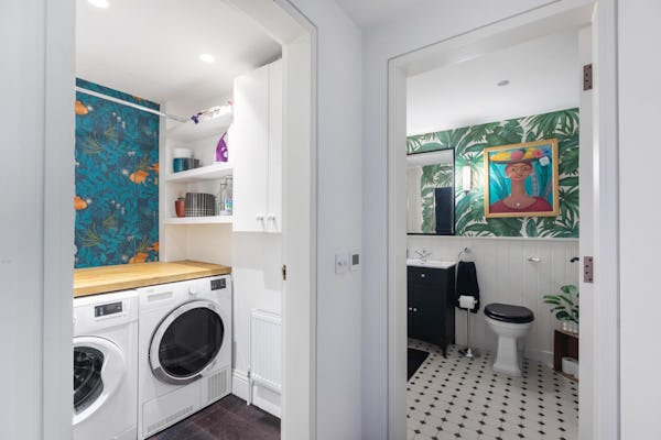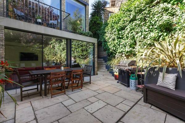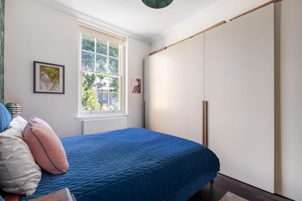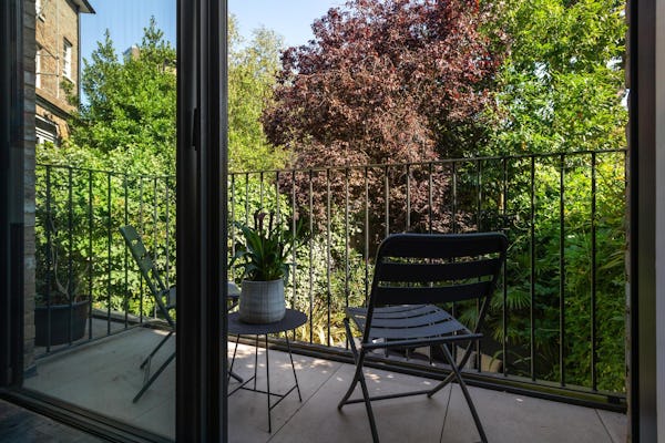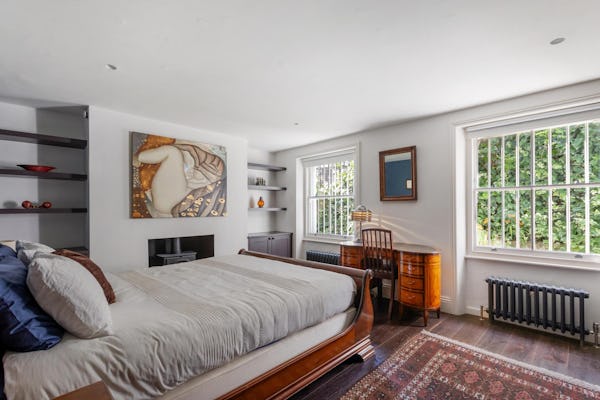On the lower floor, a second living area opens directly onto a charming garden, providing a tranquil outdoor extension ideal for shooting interior–exterior transitions. This level also includes a stylish bathroom with a roll-top bath and a separate utility room. With its blend of Georgian character, modern design, and beautifully lit interiors, this townhouse offers a cinematic and adaptable London location.