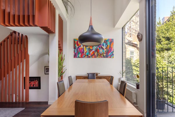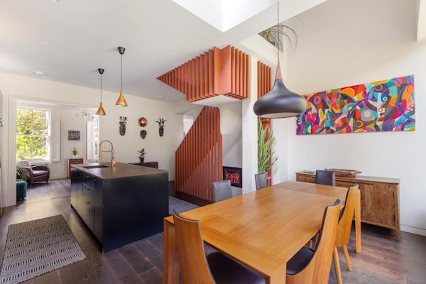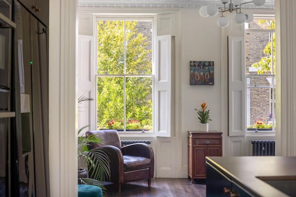 This beautifully designed Georgian townhouse offers a bright, elegant, and versatile backdrop for film and photography. The property has been thoughtfully reimagined to maximise natural light, with floor-to-ceiling glass illuminating the open-plan kitchen and dining area. The main living space flows seamlessly across this level, combining period architecture with contemporary styling to create a refined yet inviting setting.