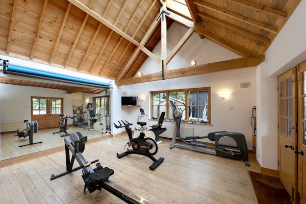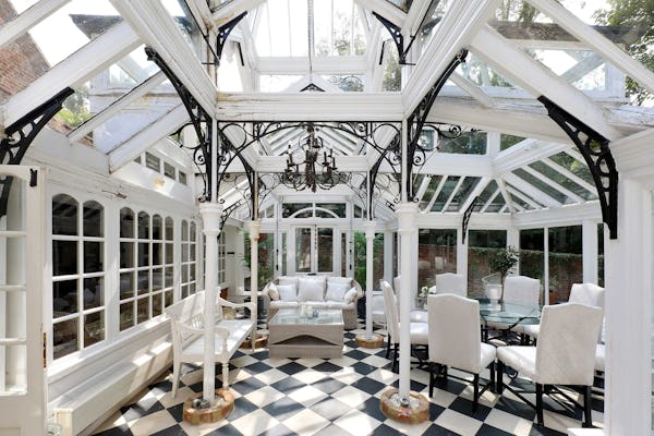The standout space is a magnificent Victorian glass-domed orangery, offering abundant natural light and sweeping views across the palazzo-style terrace. The grounds are equally impressive, featuring a natural pond, heated outdoor swimming pool, gym, sauna and a dedicated games room — providing a variety of backdrops for both interior and exterior shooting.