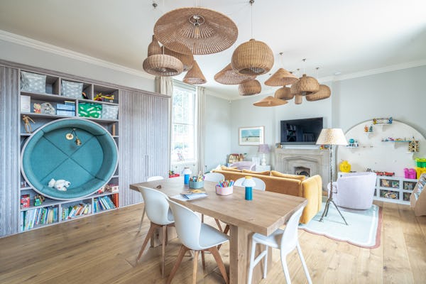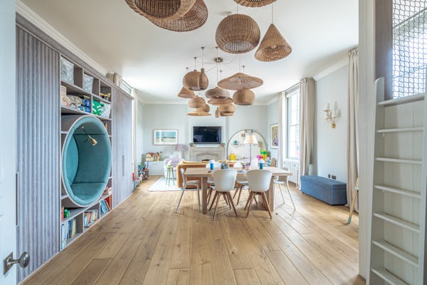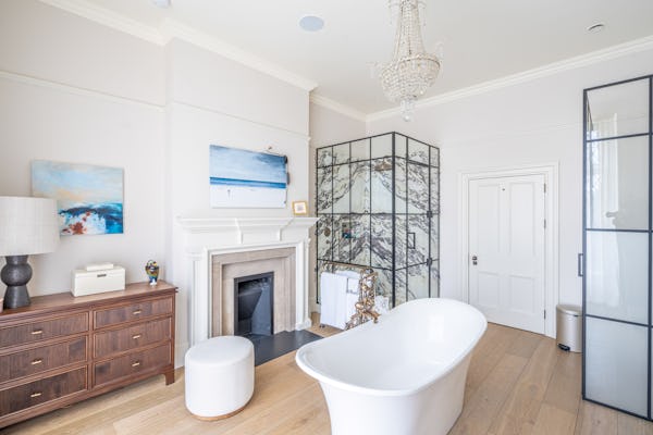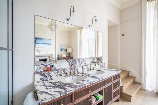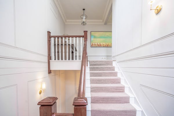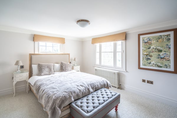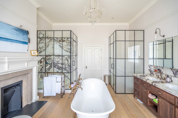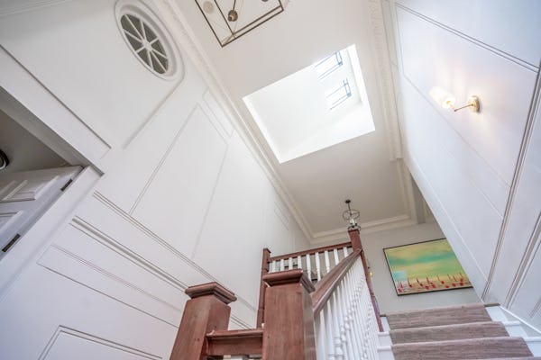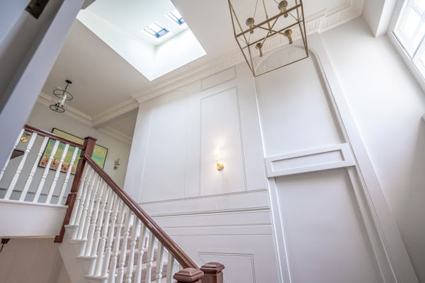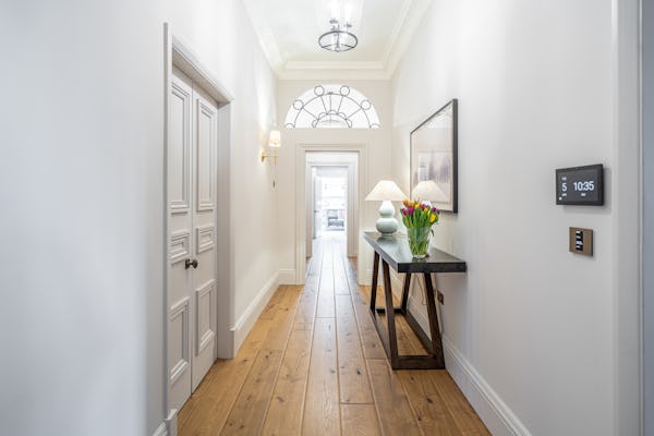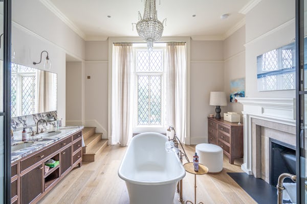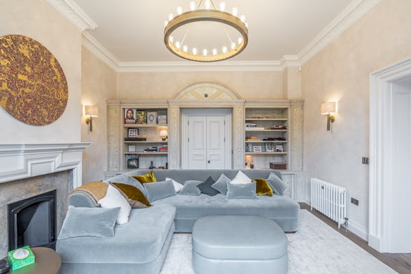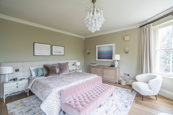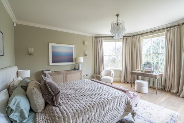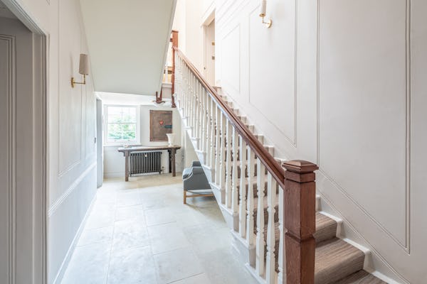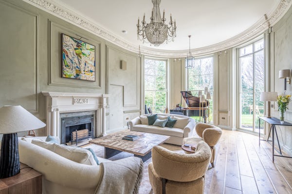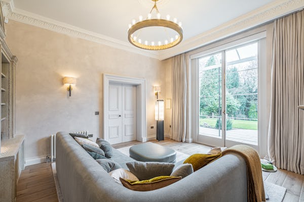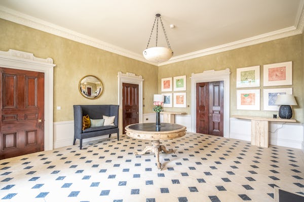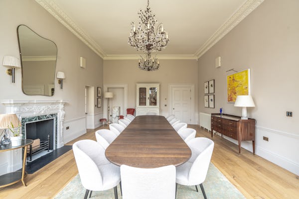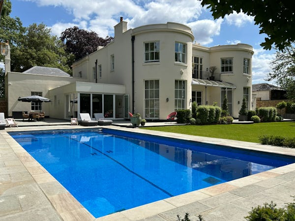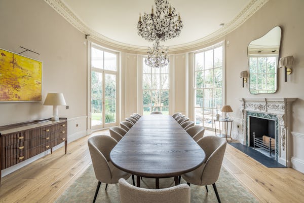 This elegant Georgian mansion in Mill Hill combines classic English grandeur with clean, contemporary interiors throughout. A striking tiled entrance hall sets the tone on arrival, leading into light-filled living spaces enhanced by floor-to-ceiling windows that flood the house with natural light. The property offers a refined yet modern atmosphere, complemented by an outdoor swimming pool and beautifully considered interiors, making it a sophisticated and versatile setting for film and television productions.