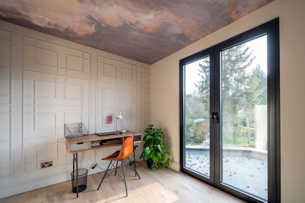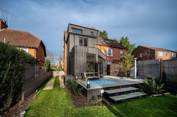 Situated in a suburban setting, just outside the town centre, the property features a large back garden with a fire pit, wildflower meadow and formal garden.