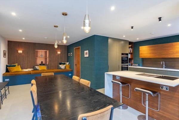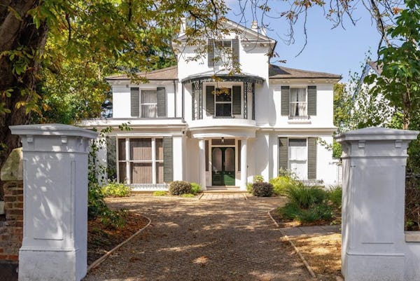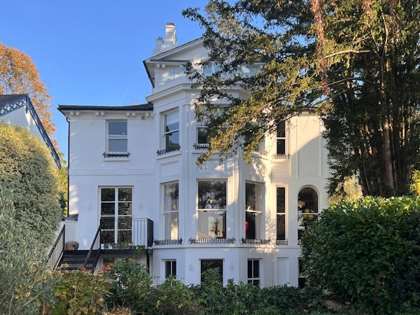 This early 19th-century detached villa offers six bedrooms and a striking blend of restored period architecture and bold contemporary interiors. Featuring high ceilings, parquet flooring, and original shutters throughout, the house provides elegant, light-filled spaces with strong visual character.