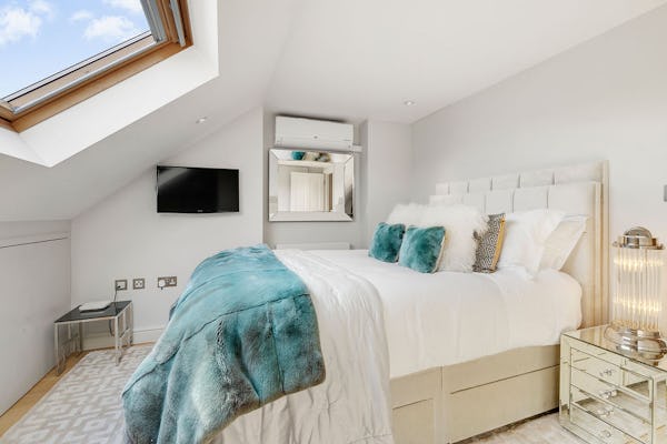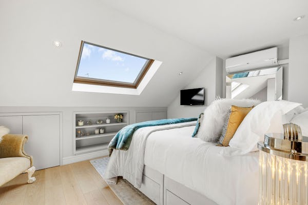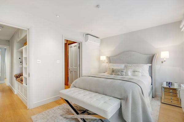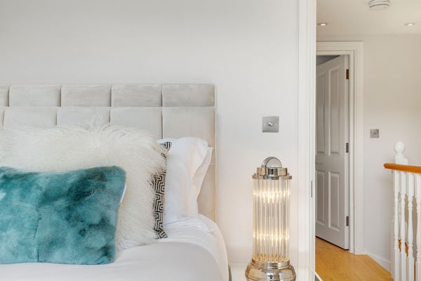 The master bedroom suite is situated on the first floor, with built in storage and an en suite bathroom. There is also an additional double bedroom with an en suite bathroom room on this level, with two further double bedrooms and a shower room on the top floor. The entire house has been completed with premium finishes throughout.