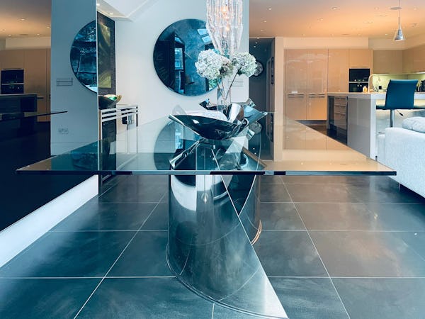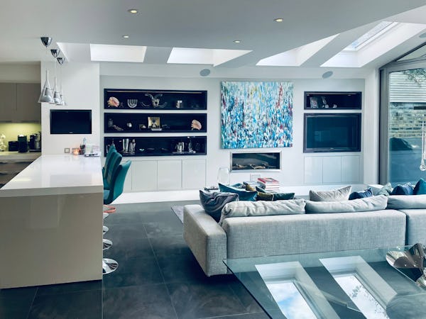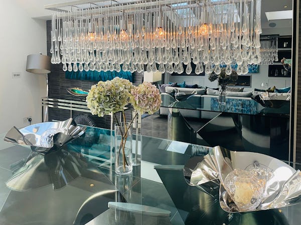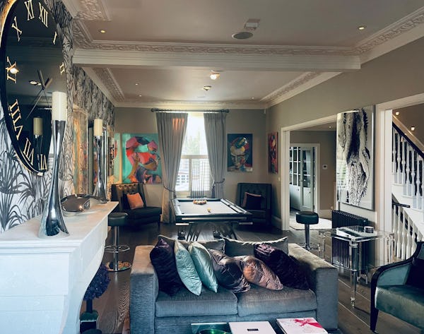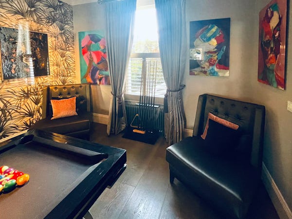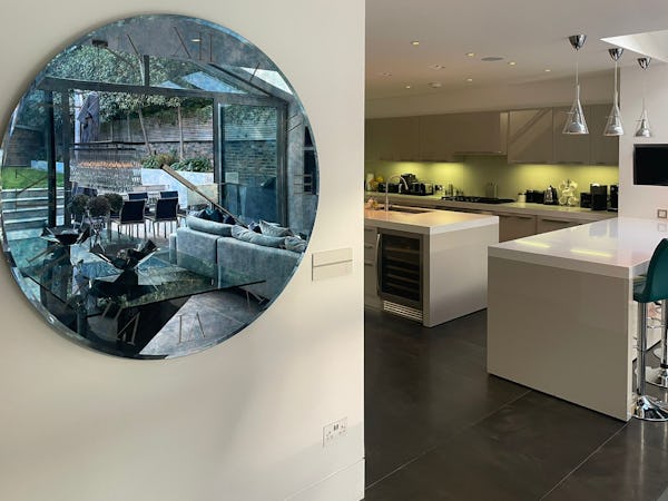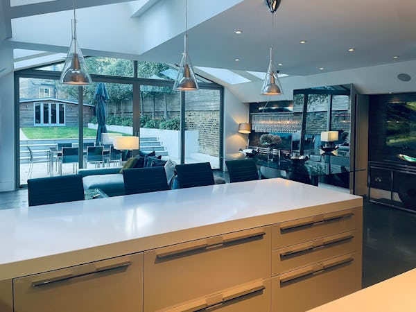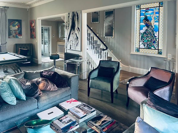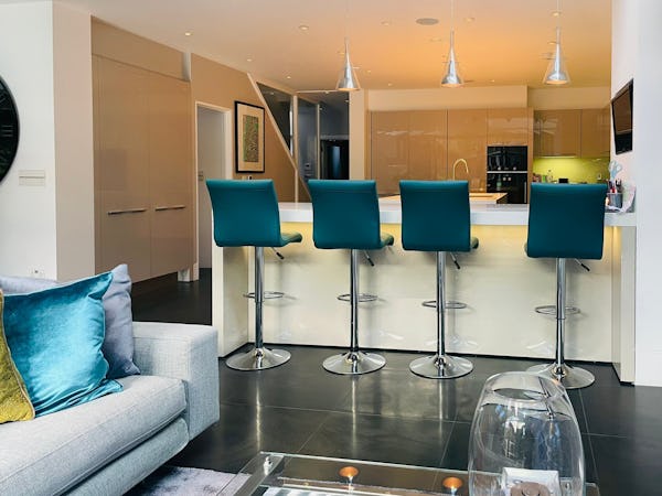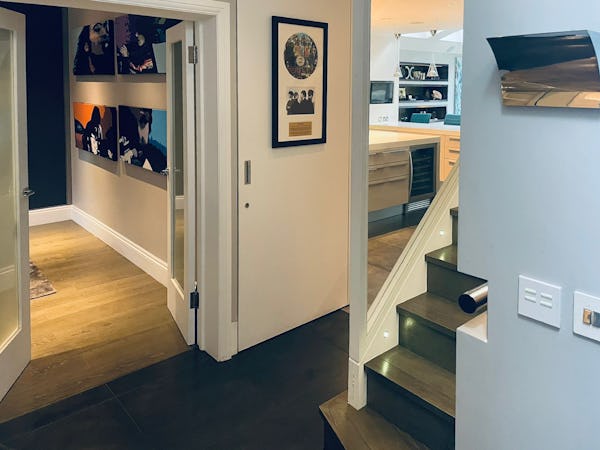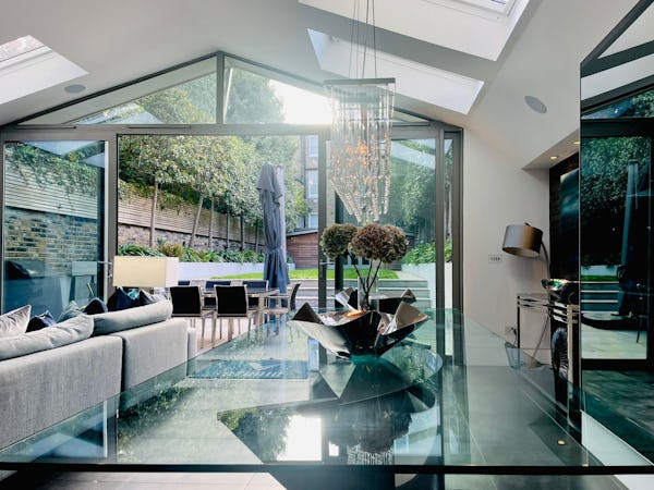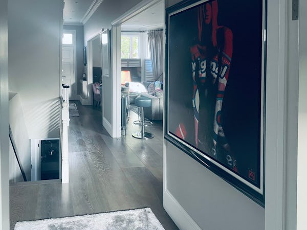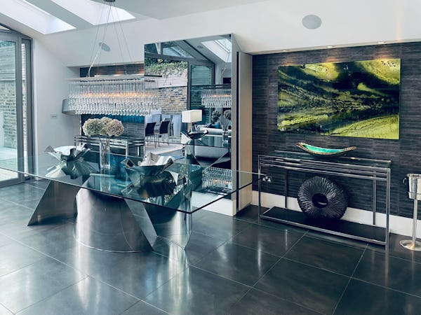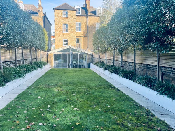 A sleek and luxurious townhouse in the heart of Fulham, featuring a spacious, fully renovated kitchen that flows seamlessly onto a beautifully maintained private garden. This exceptional property also boasts a dedicated podcast studio complete with a green room, offering a unique and modern creative space within a premium London home.