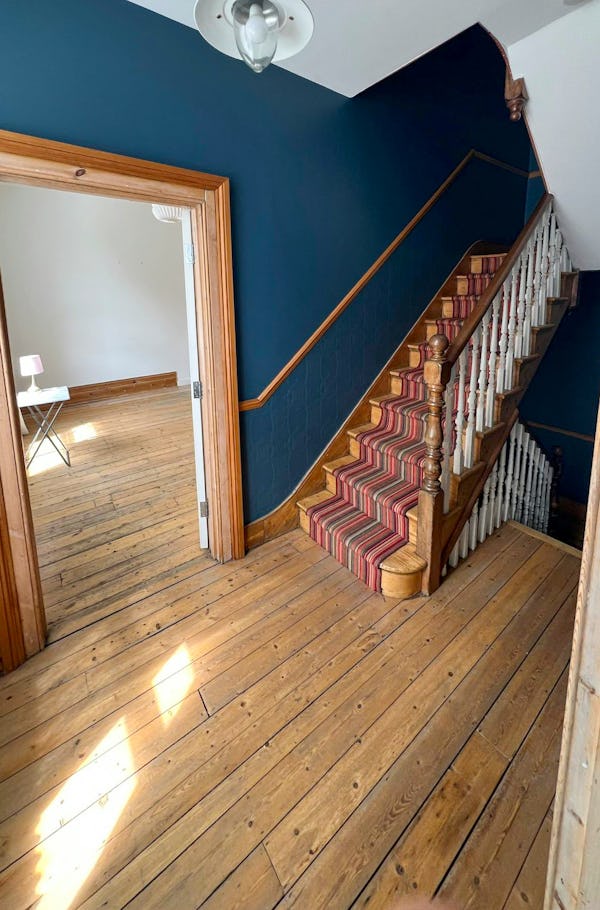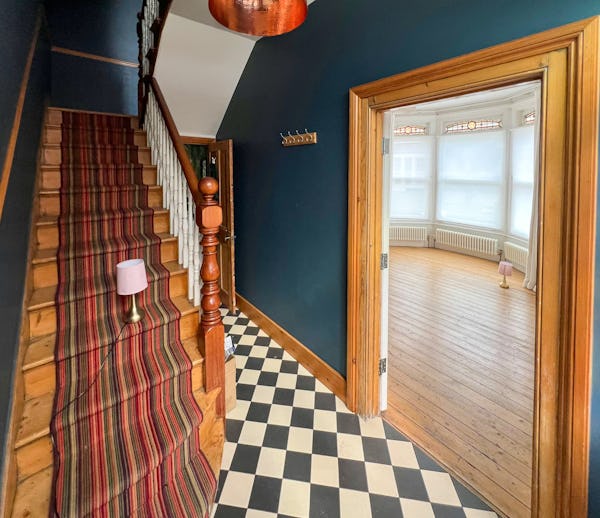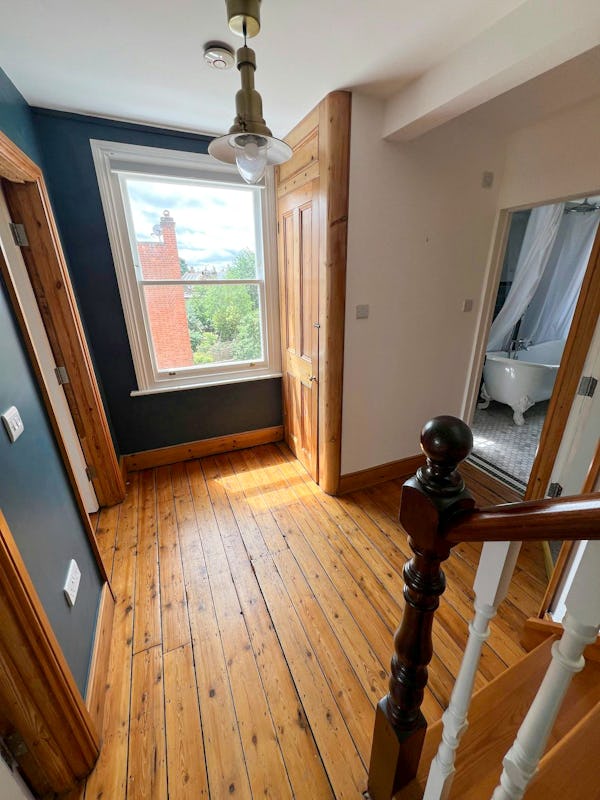 Situated on a quiet, tree-lined corner in North London, this substantial end-of-terrace Victorian home combines period character with exceptional natural light. Thanks to its unique corner aspect and large bay sash windows, the property’s generous rooms are flooded with light throughout the day. The interior retains its original soul, featuring soaring ceilings, intricate cornicing, marble fireplaces, and stripped wooden floorboards, providing an authentic period backdrop for film, television, and editorial photography.