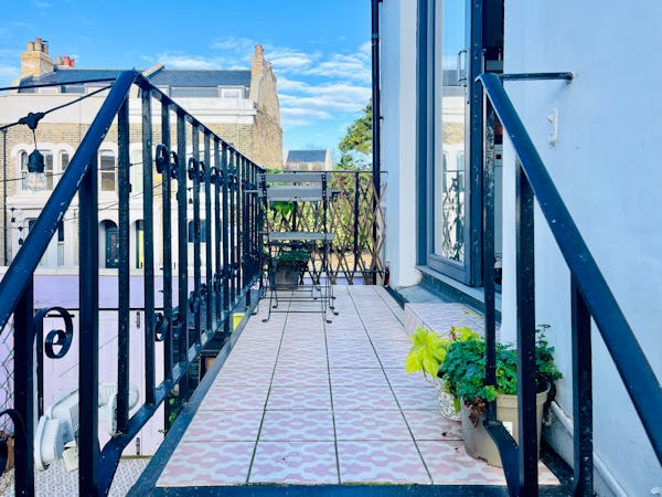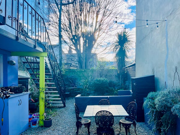 From a production standpoint, the property is highly practical. The side gate access allows for easy load-ins directly to the garden, which works well for shooting, equipment staging, or catering. Additional features include a balcony, an external staircase, and a Victorian basement with original fireplaces that provides extra character or a convenient spot for temporary storage.