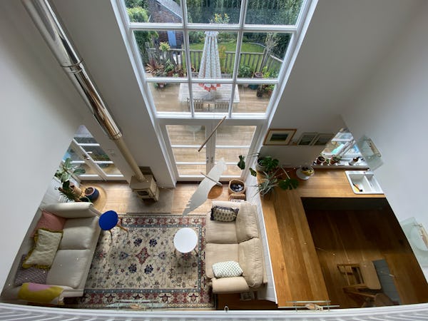 This striking New England–style house offers a versatile and cinematic backdrop, blending light, space, and elegance. At its heart is a dramatic double-height living, dining, and kitchen area, anchored by a sweeping arched window that floods the interiors with natural light and frames views of the garden. The architectural scale and clean lines make it an ideal setting for both lifestyle shoots and feature productions.