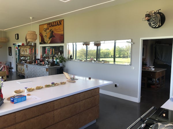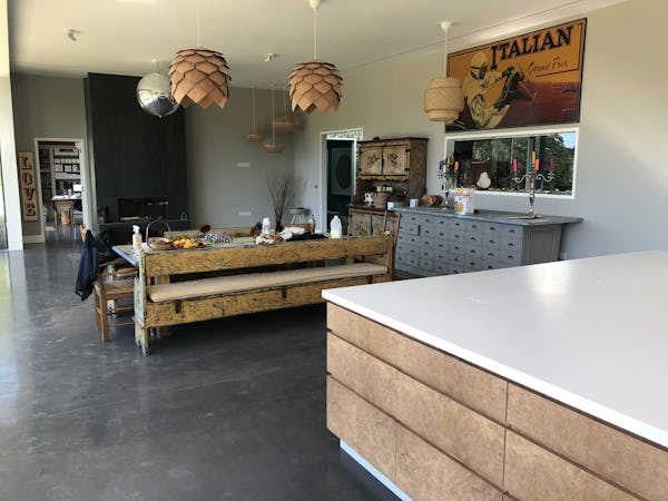 The property is all one level with high ceilings , lots of glass and polished concrete floors with under floor heating throughout.