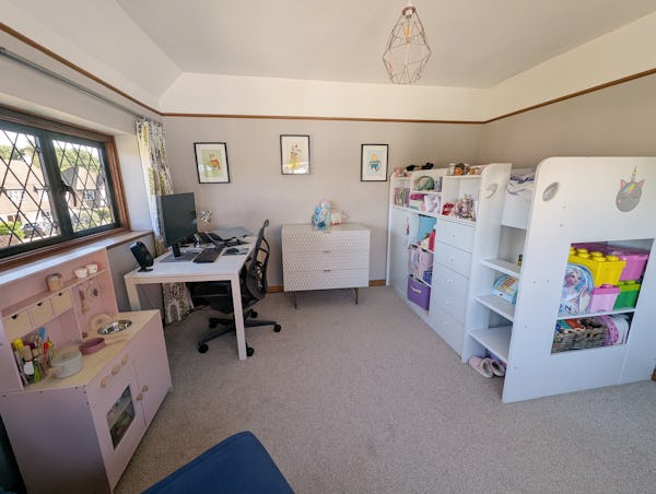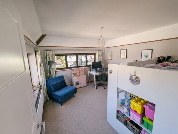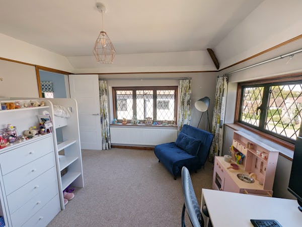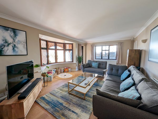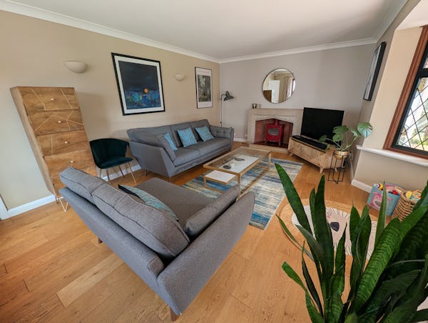 This detached 1950s house located on a quiet, private road in the historic market town of Epsom, Surrey. The property features a generous driveway with off-street parking, an open-plan kitchen/diner with stone worktops, and a spacious living room with a log burner. With three bedrooms, a study, an upstairs family bathroom, and a downstairs shower room, the home offers versatile interiors with many dual-aspect rooms providing excellent natural light.