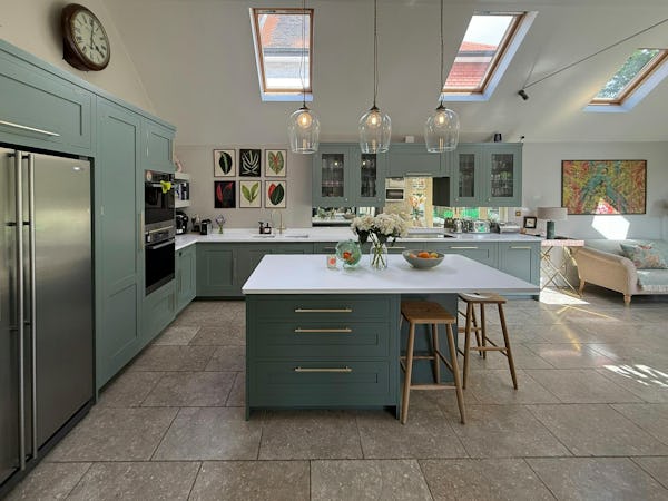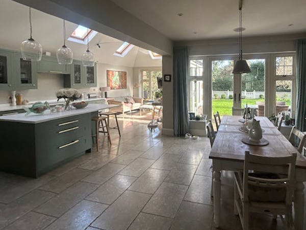 A spacious double-fronted 1930s detached family home, offering over 4,300 sq ft of versatile shoot space across three floors. The ground level features a large open-plan kitchen, dining and family living zone with expansive garden-facing windows that flood the space with natural light—ideal for lifestyle, drama and commercial shoots. Additional ground-floor rooms include a formal drawing room, separate playroom and a garage-home-gym, providing multiple contrasting looks within one location. The upper floors offer six bedrooms and three bathrooms, including an en-suite, giving production teams flexibility for bedroom, dressing room or green room setups.