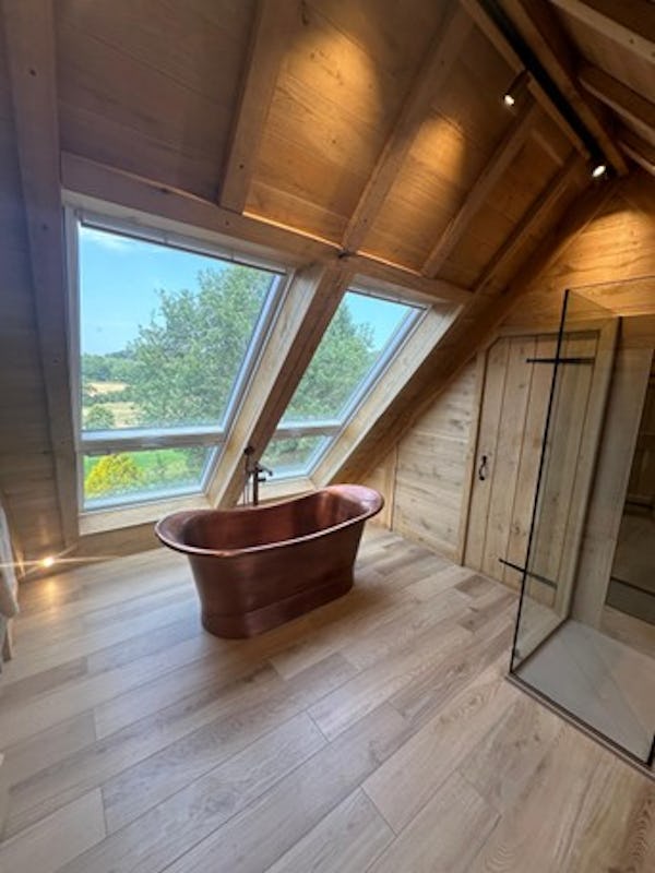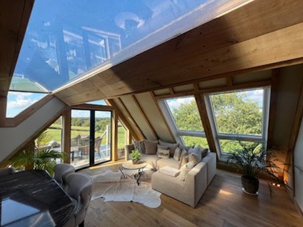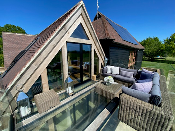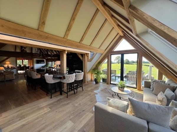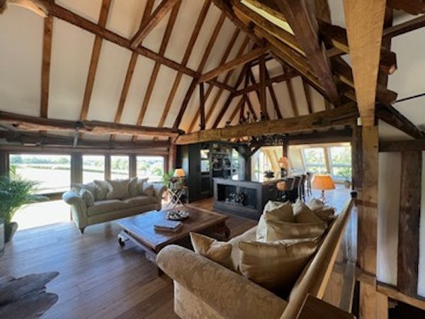 The stunning house is full of character; traditional oak detailing, new feature kitchen on the first floor, oak clad master bedroom / ensuite, glass floor terrace and amazing views over the uninterrupted Surrey countryside.