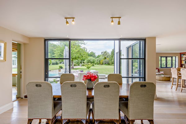 Originally built in 1976 and renovated in 2024, Holtfield House is over 6,000 sqft and has a contemporary finish set amongst a countryside location. The house retains various original 1970's features (including a kidney-shaped swimming pool, sauna and Japanese water garden) and is set within 2.5 acres of south-facing gardens. There is an additional 2-acre paddock suitable for a unit base, trailers and technical vehicles whilst our driveway can accommodate up to 14 parked cars.