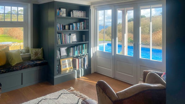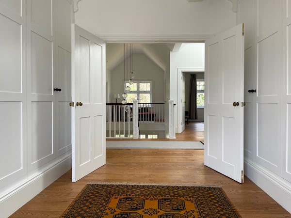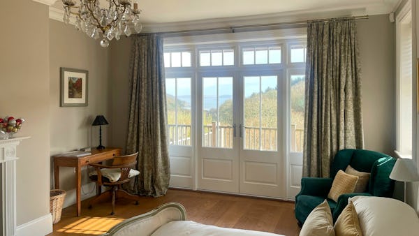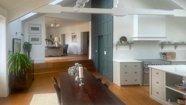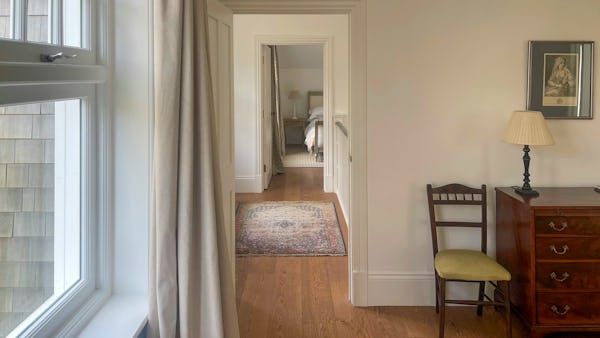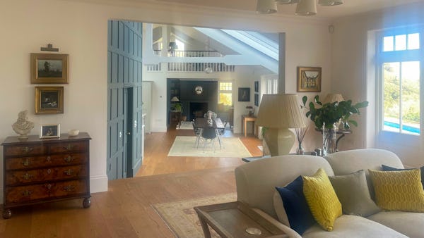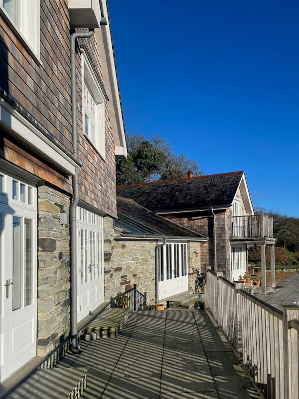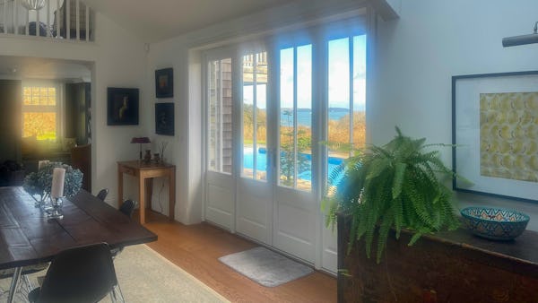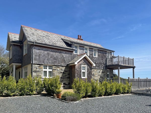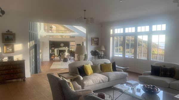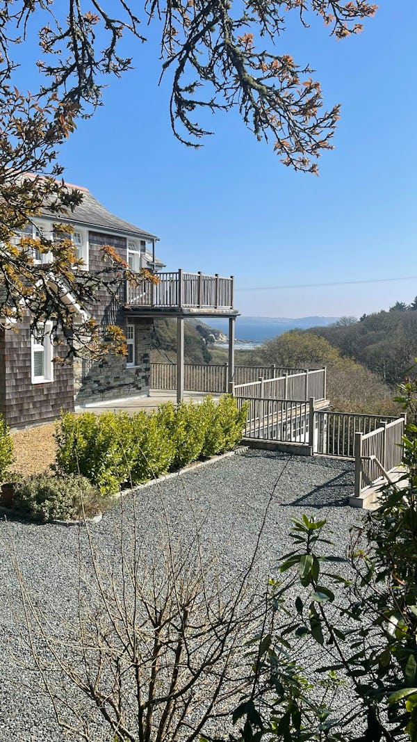 This refined 5,000 sq. ft. coastal estate offers a rare "East Coast/Hamptons" aesthetic on the Cornish coast. Defined by its shingle-clad exterior, sweeping gables, and 4.5m vaulted ceilings, the property provides high-volume, light-drenched spaces designed for easy crew movement. Every primary room is oriented toward unencumbered views across a 10-acre private valley to the sea, offering a world-class cinematic backdrop for film, fashion, and lifestyle campaigns.