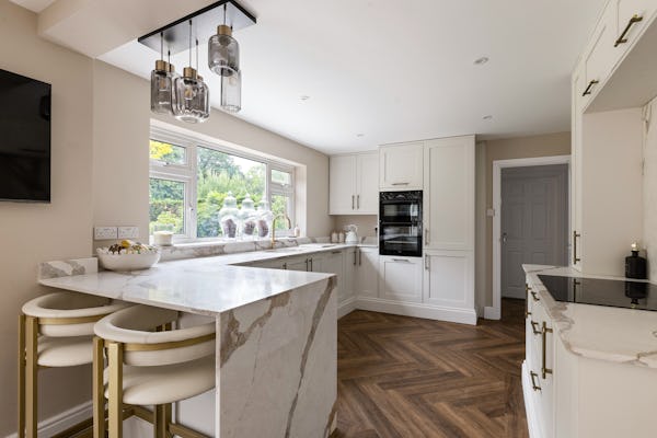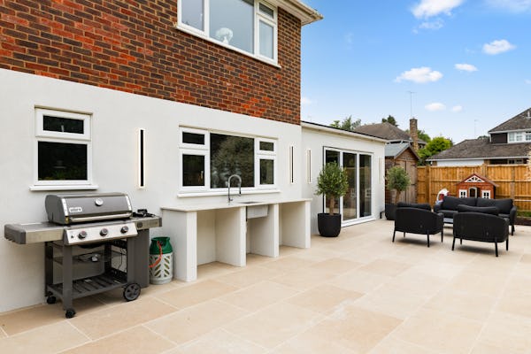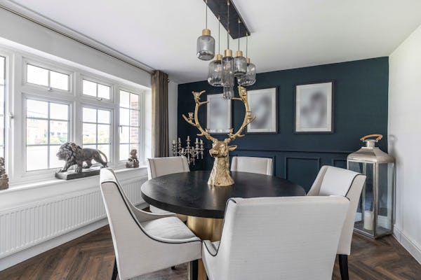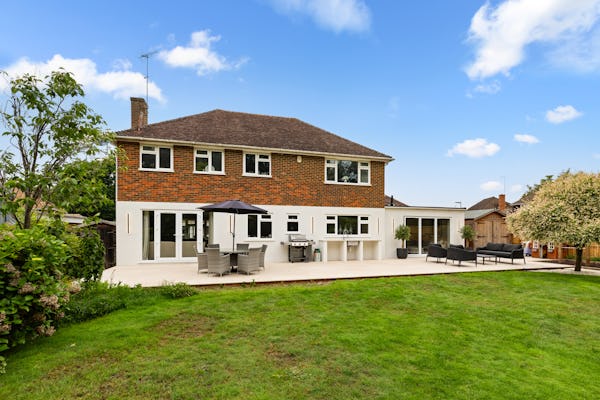 This contemporary detached home in Windlesham, Surrey, offers a bright and versatile environment specifically suited for modern lifestyle and culinary productions. The heart of the house is an expansive, open-plan kitchen and dining area, flooded with natural light through large bi-fold doors that create a seamless transition to the outdoors. With five well-proportioned bedrooms, a dedicated home office, and a spacious lounge also featuring bi-fold access, the property provides a variety of clean, neutral backdrops that can easily be adapted for high-end TV, film, or editorial shoots.