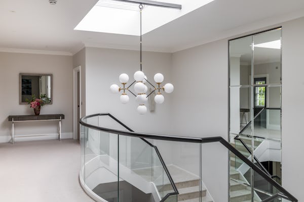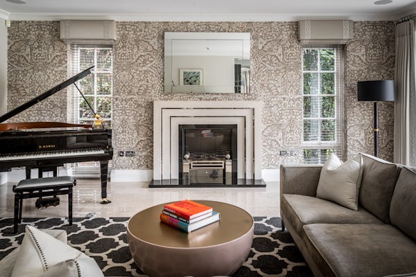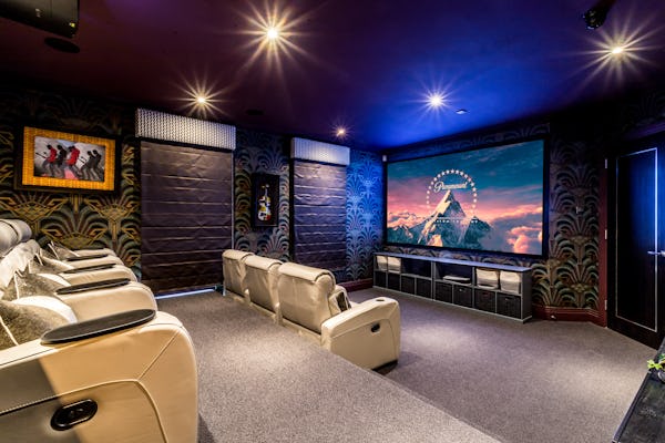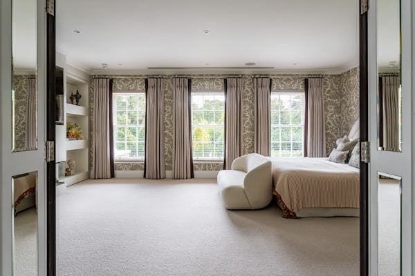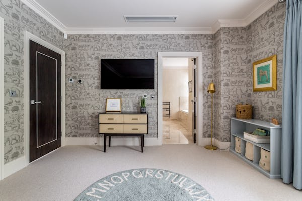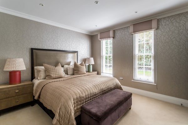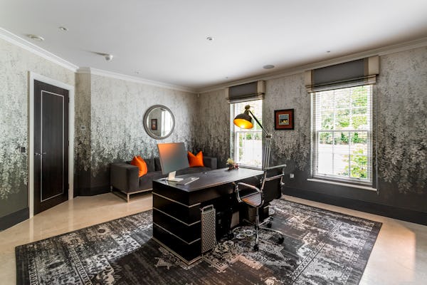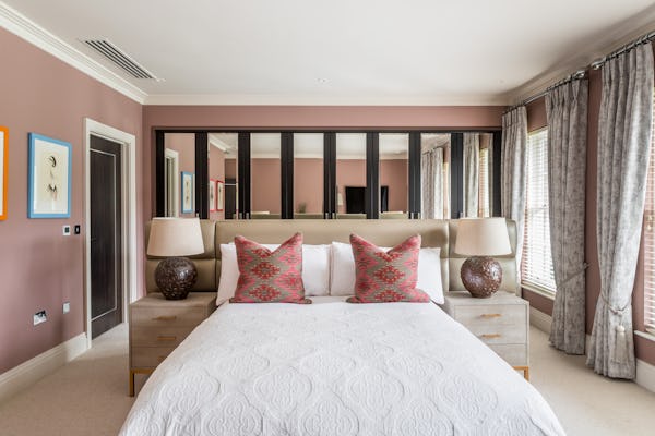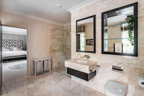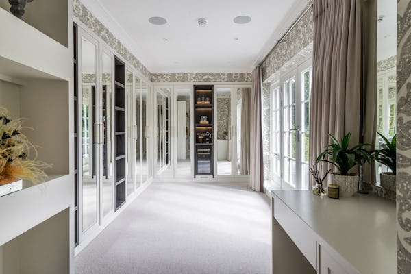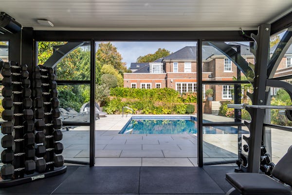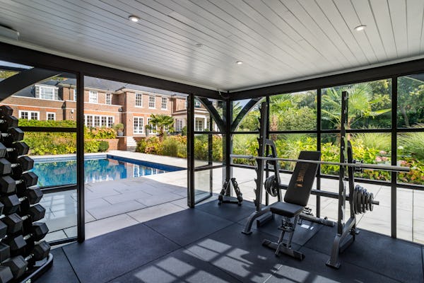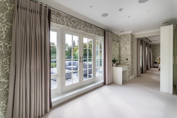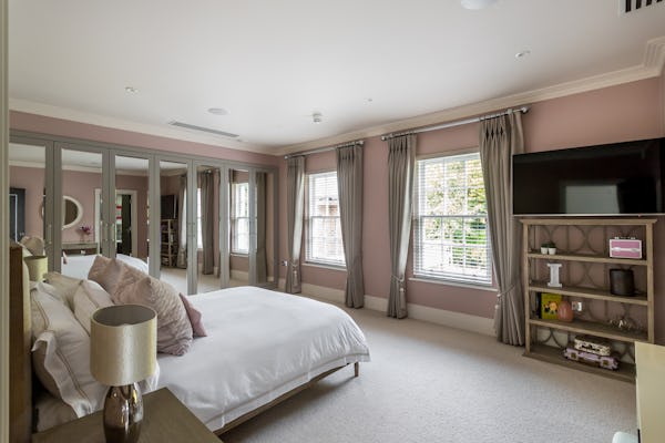 The property provides a well-proportioned and flexible internal layout, comprising 9 bedrooms and 9 bathrooms, supported by multiple reception rooms that can be configured for a range of filming setups. Additional internal areas include a dedicated cinema room, fully equipped gym, and wine cellar.
