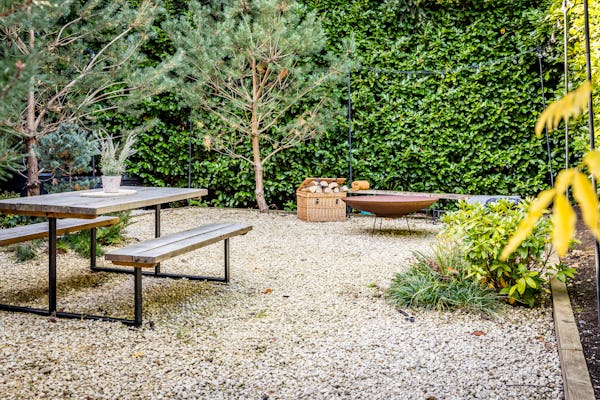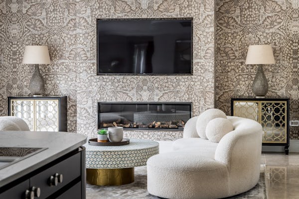 Externally, the grounds extend to approximately one acre and include a heated swimming pool, outdoor kitchen, fire pit, and multiple seating areas, enabling a variety of exterior scenes within a controlled and contained environment. A large private driveway provides direct vehicle access and on-site parking, supporting efficient load-in and load-out for production vehicles and equipment.