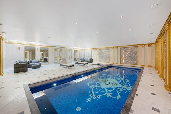 Rooms available are a large reception hall, formal dining room, four kitchens, 10 bedrooms and bathrooms, swimming pool, sauna, steam room, jacuzzi, main hall, lift to access all levels.
