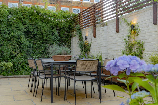 A generous private courtyard extends the living space outdoors, offering both a dining area and relaxed seating. This versatile setting provides the perfect balance between urban character and contemporary style, ideal for shoots that require a unique blend of history and modernity.
