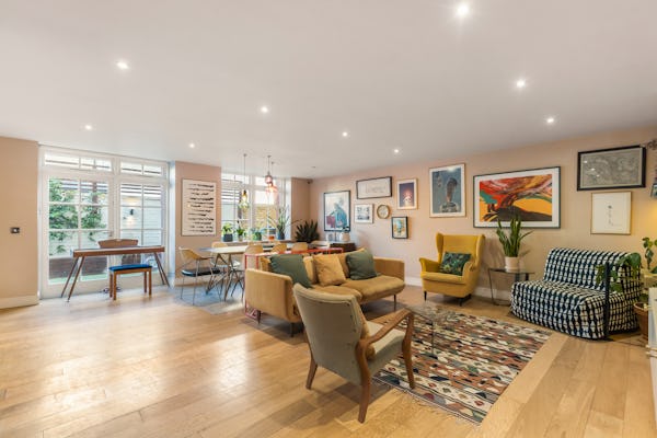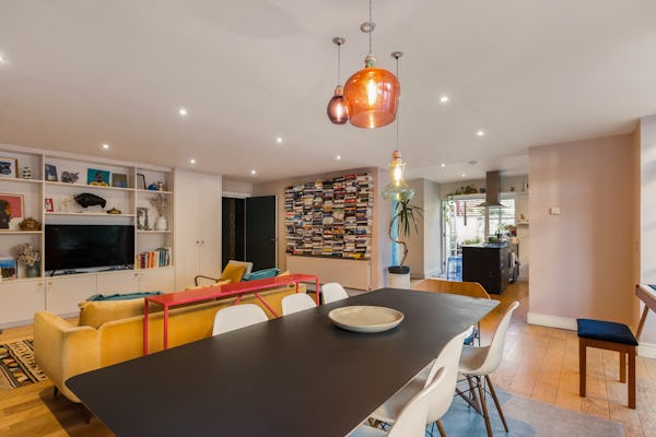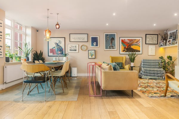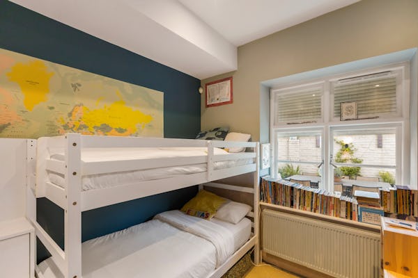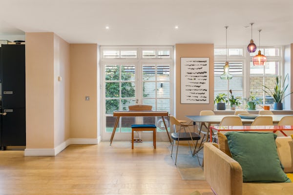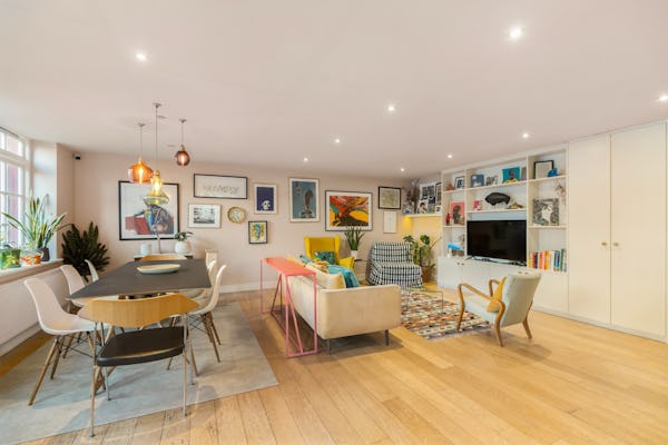 Set within a converted Victorian school building, this striking flat combines heritage architecture with a fresh, contemporary finish. The interiors are bright, modern, and full of colour, with open-plan living creating a sense of space and versatility. High ceilings and large windows nod to the property’s historic origins, while bold design choices and playful décor bring it firmly into the present, making it a dynamic backdrop for filming or photography.