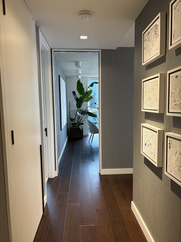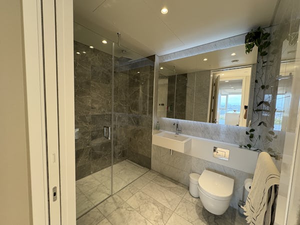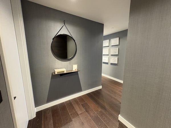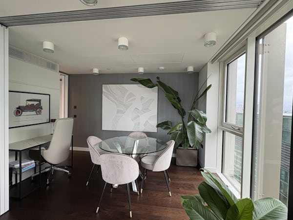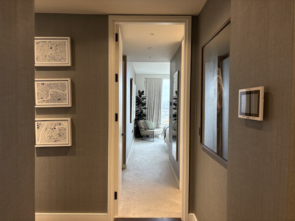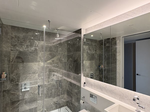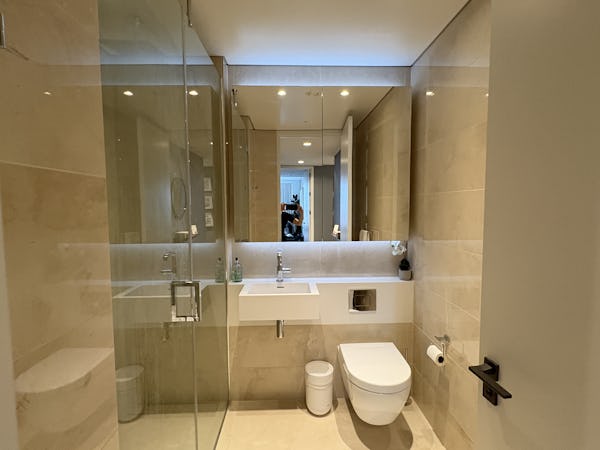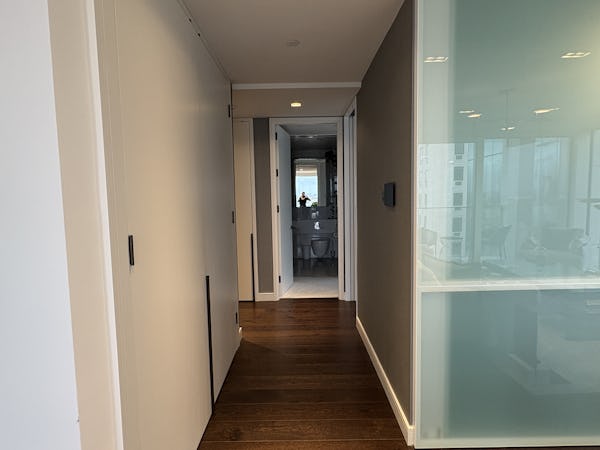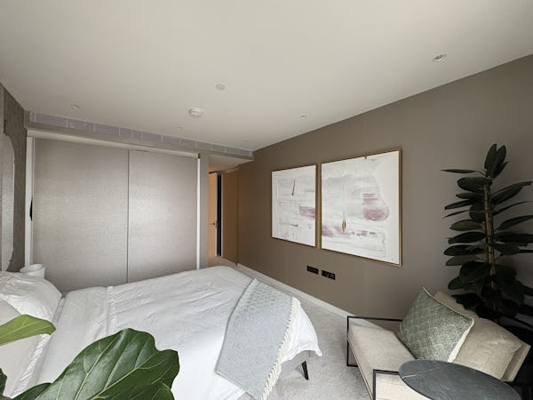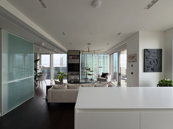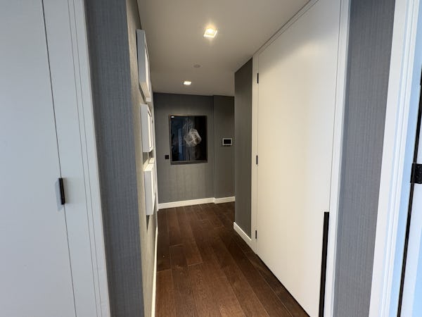 2 bed, 3 bath flat overlooking the London skyline and the Thames. Modern flat with wooden floors, marble bathrooms, kitchen island and a balcony facing the river. Floor to ceiling windows in all rooms.