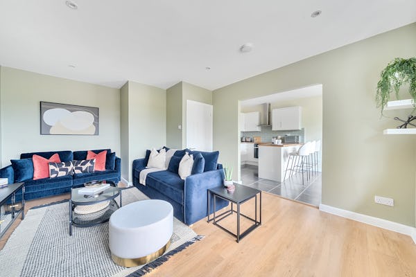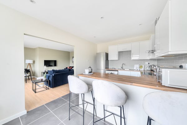 This modern, beautifully presented 2-bed apartment offers a bright open-plan living area, a fully equipped kitchen, stylish double bedrooms, and a sleek bathroom with both a bath and a walk-in shower. Just a 1-minute walk from the station with fast links to London Waterloo.