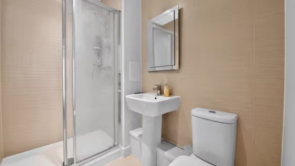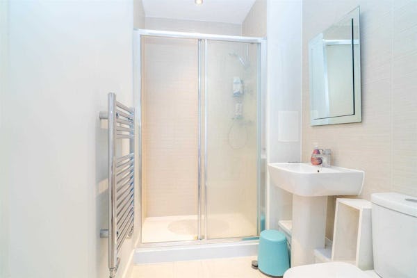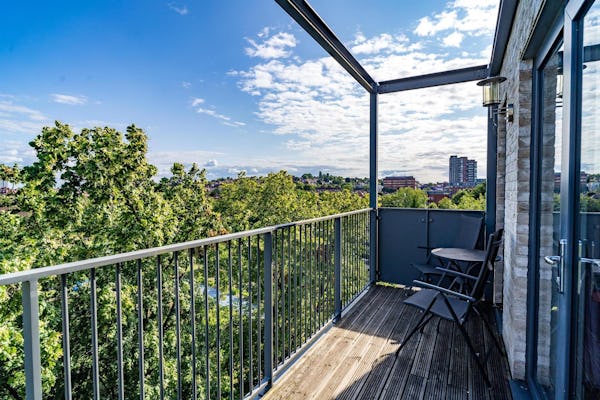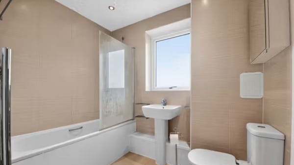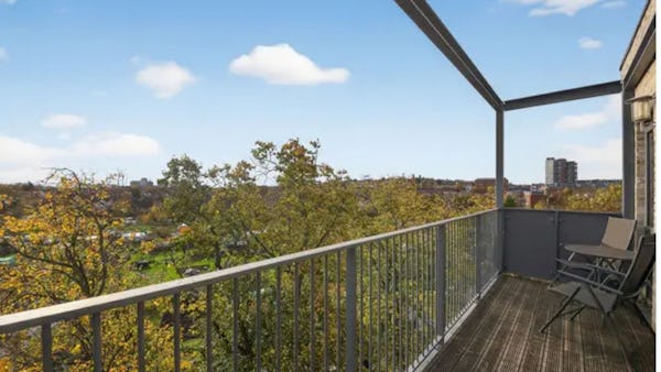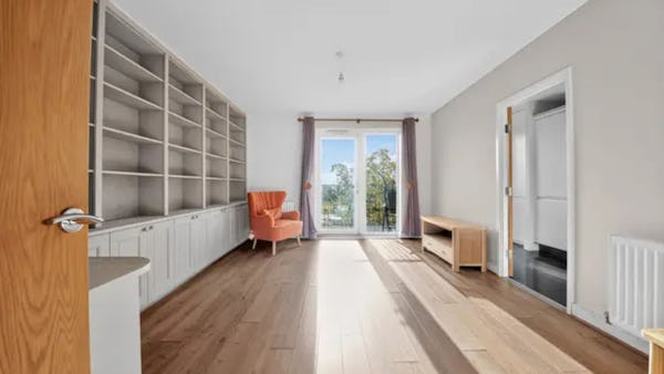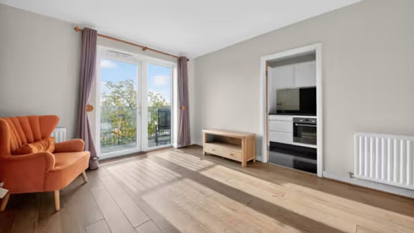 This top-floor, end-of-terrace apartment in Colindale is a practical, no-nonsense choice for productions needing a realistic domestic setting. Because the unit is vacant and minimally furnished, it serves as a genuine blank canvas that you can dress to fit anything from a starter home to a moody, minimalist flat. The layout features two bedrooms, two bathrooms, and a separate kitchen, but the highlight is the south-facing living room. It opens onto a balcony overlooking local allotments, providing a quiet, green backdrop and plenty of natural light for daytime interiors.