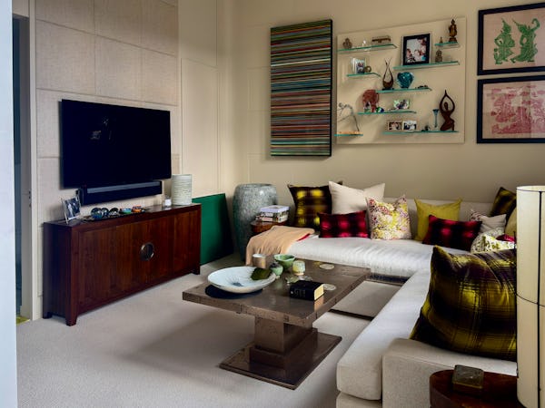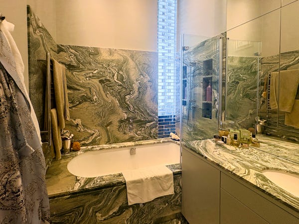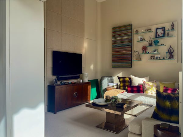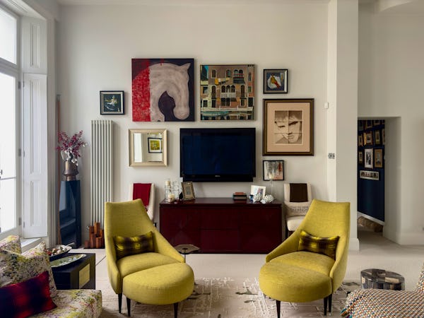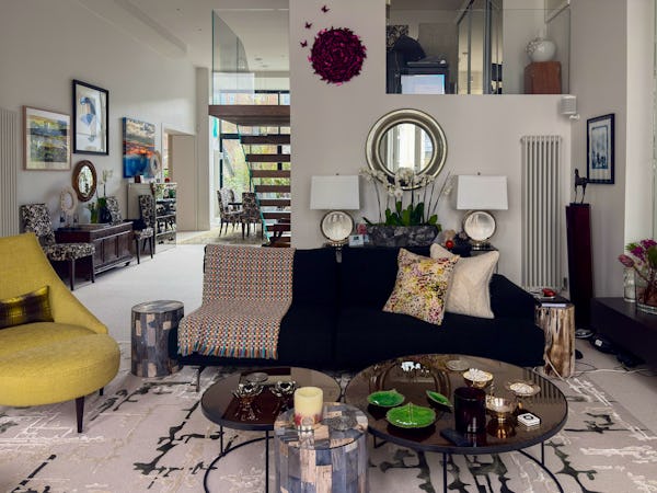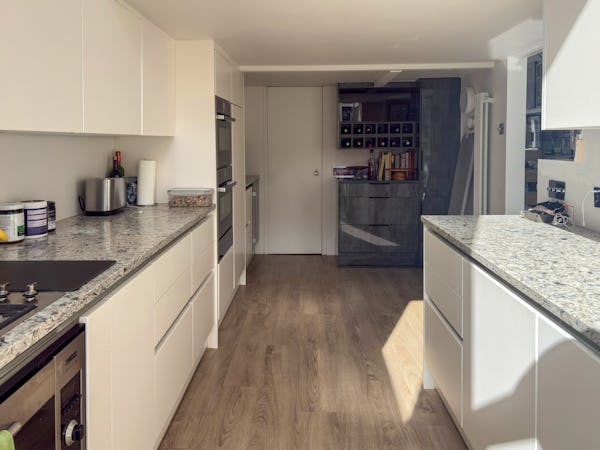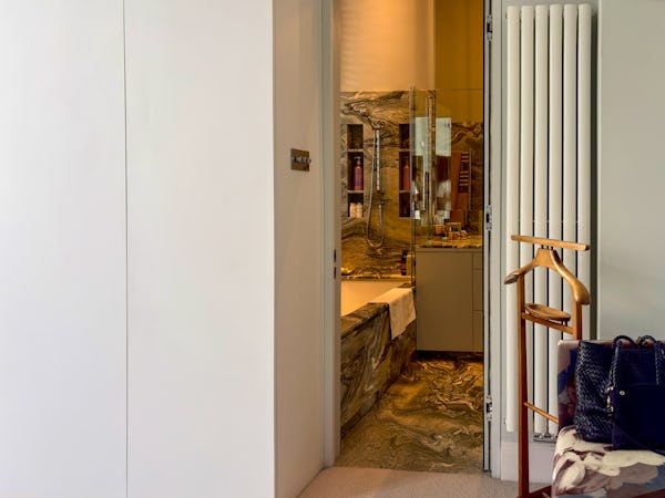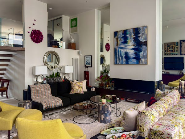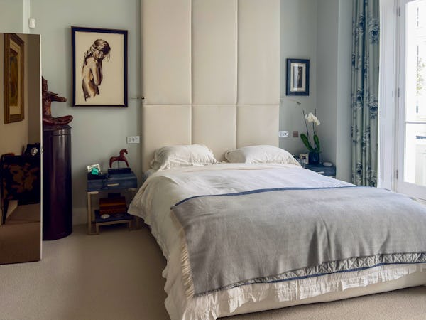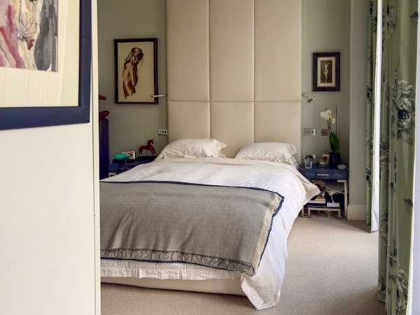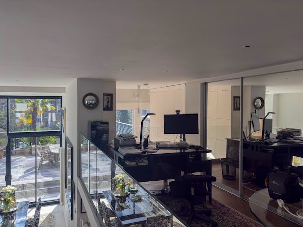 This Victorian conversion near Earl’s Court is a sophisticated location that blends classic period character with sharp, modern architectural details. The apartment's primary feature is a set of three floor-to-ceiling French doors in the main reception, which open onto a private balcony and flood the space with natural light. This grand, traditional feel is balanced by a modern floating staircase that leads to a mezzanine, offering a clean contemporary contrast to the original high ceilings.