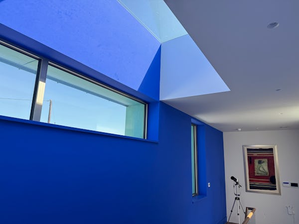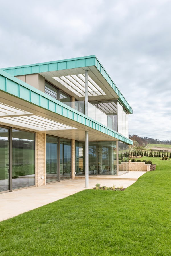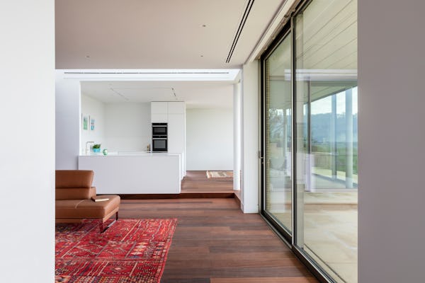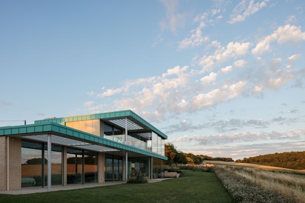 A striking contemporary house, built in the pavilion style.Completed in 2021, with expansive use of glass (135m²) and dramatic sense of space. The ground floor features a bright, open-plan living area with soaring 2.9m ceilings, allowing natural light to flood the interiors throughout the day and creating clean sightlines.