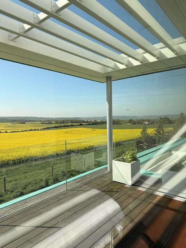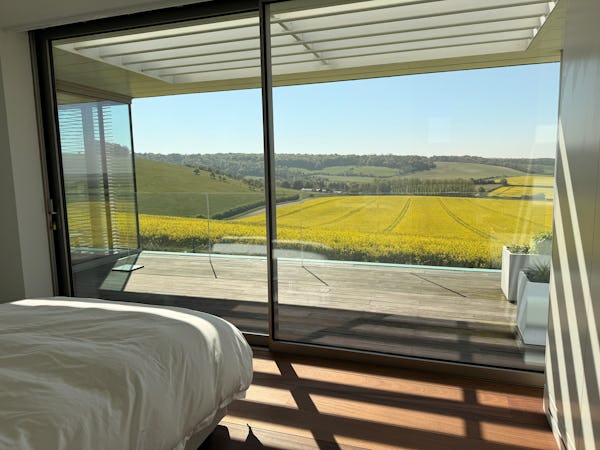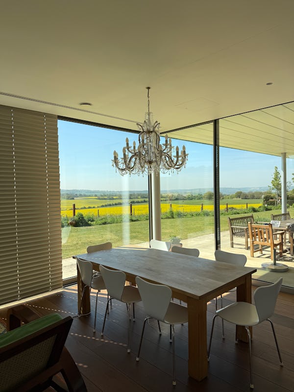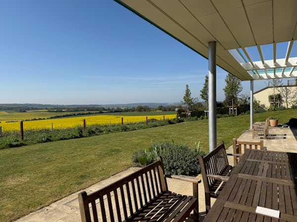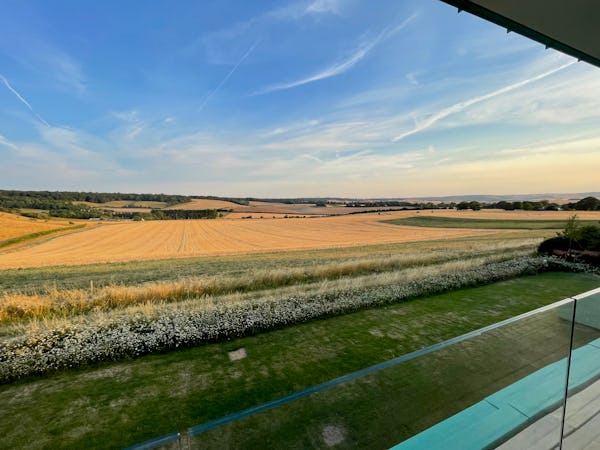 Set against uninterrupted farmland, the property commands an exceptional 200º panoramic view across the Oxfordshire countryside, offering cinematic backdrops that shift beautifully with the light from sunrise to sunset.