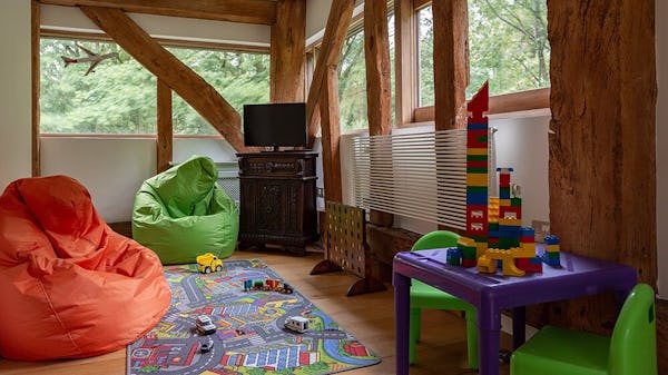 The rest of the property offers a massive variety of setups across 17 acres, giving you everything from high-end lifestyle backdrops to rugged outdoor scenes. You’ve got an indoor pool, a fishing lake, a tennis court, and even a treehouse at your disposal. Whether you’re shooting a domestic interior in one of the four ground-floor bedrooms or an atmospheric night scene by the fire pit and hot tub, the space is flexible enough to handle a full production footprint without losing its effortless, lived-in charm.