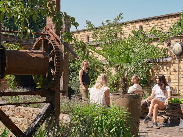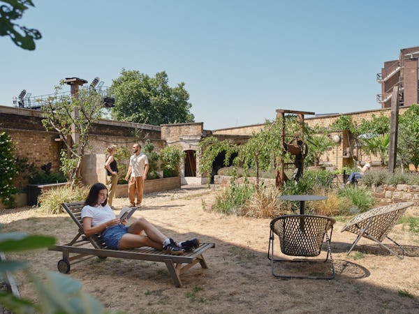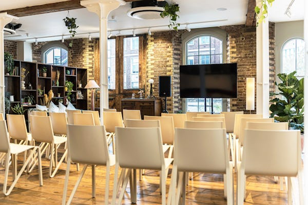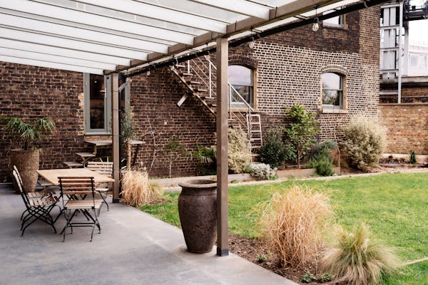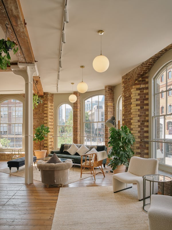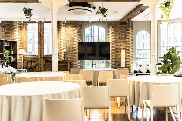 Lounge: Light-filled loft style lounge in a Grade II listed warehouse, fully dressed and styled with sumptuous soft furnishings, beautiful plants and exposed brickwork Situated on the first floor of a former chocolate factory, this stunning studio has floor-to-ceiling windows, industrial beams, cast iron cream columns, feature brickwork and wooden floors throughout. Boasting an abundance of natural daylight and furnished with a variety of plush soft seating areas and a large dining table, the lounge is the perfect intimate space for photoshoots and filming. Styled to create beautiful shoot opportunities with different backdrops at every turn, this location has become a popular studio for commercial and lifestyle photography, fashion and editorial shoots, interviews, music videos and performances. The lounge is an open-plan and versatile space in a fantastic location. Communal Garden, and a small kitchen (no cooking facilities) attached. The Lounge is on the 1st floor. No lift, access via a wide staircase. Open for filming, photo shoots, corporate meetings/events, and wedding reception. Catering services are available upon request. Can be open until 11 pm and at weekends.