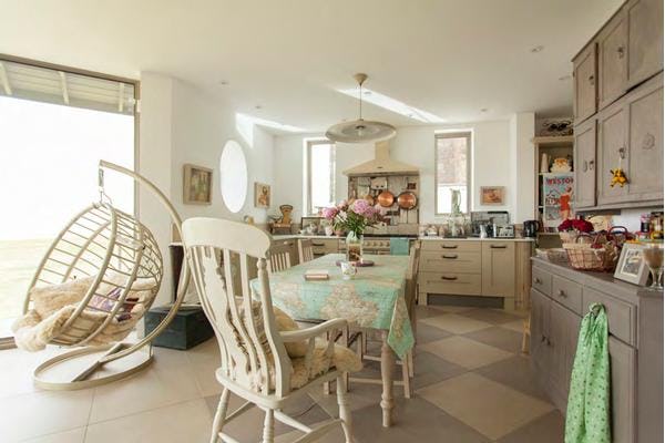 Stunning beach house looking onto the sea front. Very light colour scheme featuring lots of white walls and pale warm colours with slight rustic influences. Very spacious property with glass doors looking out onto beach. Includes lovely blue bathroom.